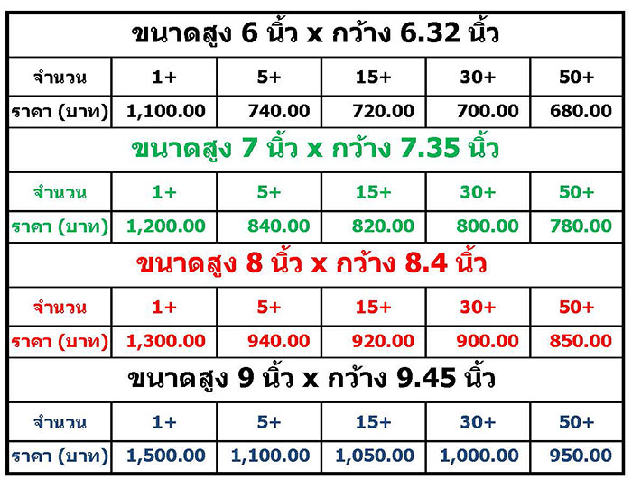 4.กรณีที่ลูกค้าต้องการสีโลโก้ หรือ ตราสัญลักษณ์ตามสีจริง ทางเรามีรับบริการสกรีนยูวี สนใจบริการฯกรุณาสอบถามเพิ่มเติมได้จากพนักงานขาย